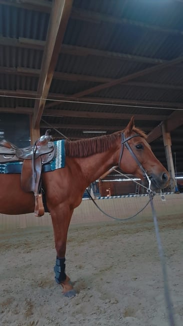 Joe ist ein sehr ruhiges Pferd und ist seit Mai 2024 bei uns als Schulpferd.